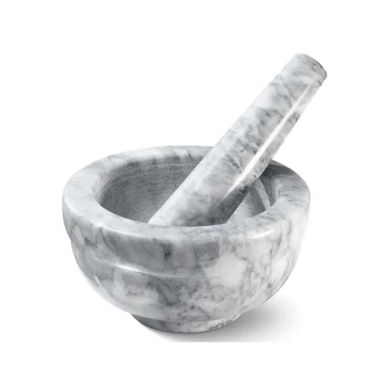 - Beautiful Pill Crusher Set - The stone mortar and pestle are all white with gray accents and a smooth outer finish. This grinder set for spice will look gorgeous on your countertop or kitchen shelf.