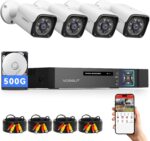 1. CCTV cameras: 4 black cameras, likely infrared night vision, weatherproof, with standard resolution (e.g., 1080p).