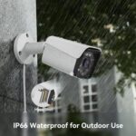 4. Solar LED flood lights: 3 units with built-in solar panels, rechargeable batteries, automatic dusk-to-dawn operation, and LED brightness for outdoor security lighting.
