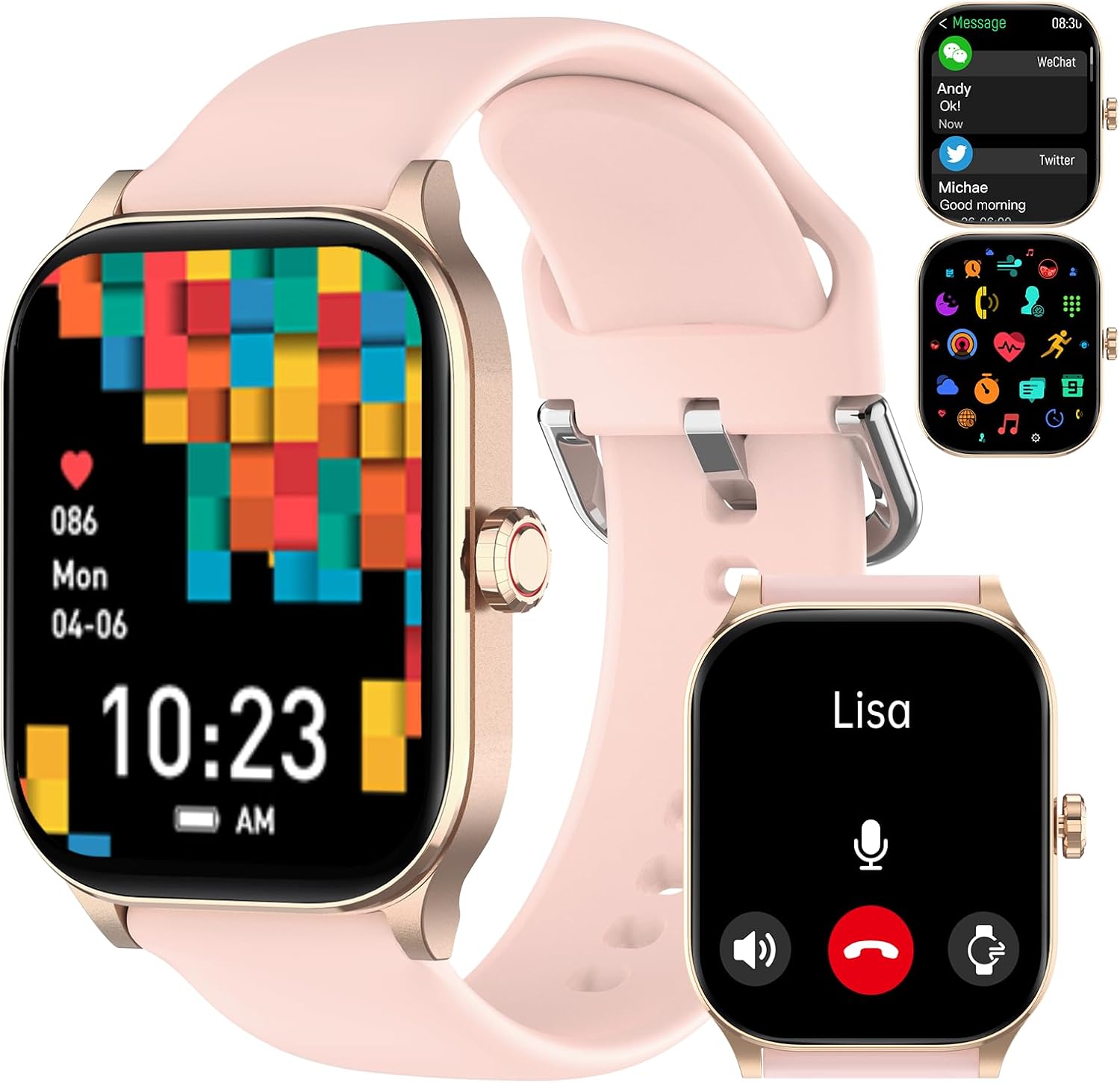 - Bluetooth Call and Smart Notifications: The smart watch with a built-in speaker and microphone, you can make and receive calls directly on the smartwatch, freeing you from your phone. And raise your wrist to light up the screen to receive notifications for calls, messages, and social media alerts directly on your wrist, so you never miss an important update while staying focused on your fitness goals.