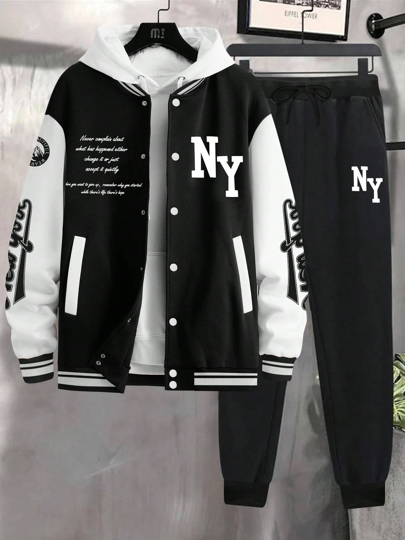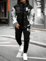 Home Clothing Male Varsity Jacket and Jogger Set – Black