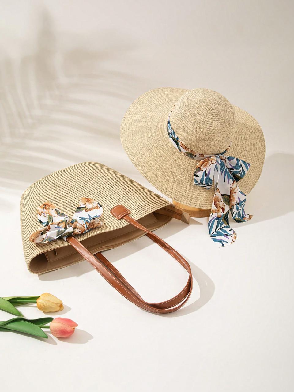 Women’s Holiday Boho Tropical Plants Pattern-Hat & Bag (Beige)
